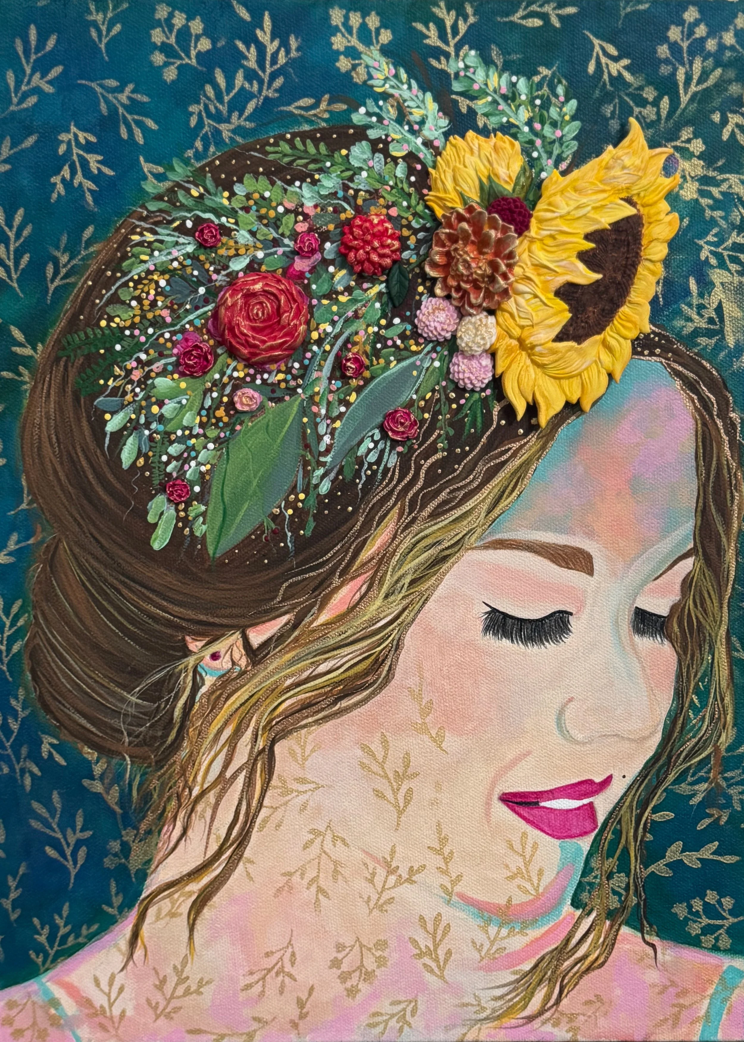 Quiet Strength, the latest addition to my flower girl series of paintings, has captured my heart as I create and paint each one. Each flower girl tells a unique story, but Quiet Strength stands out.
